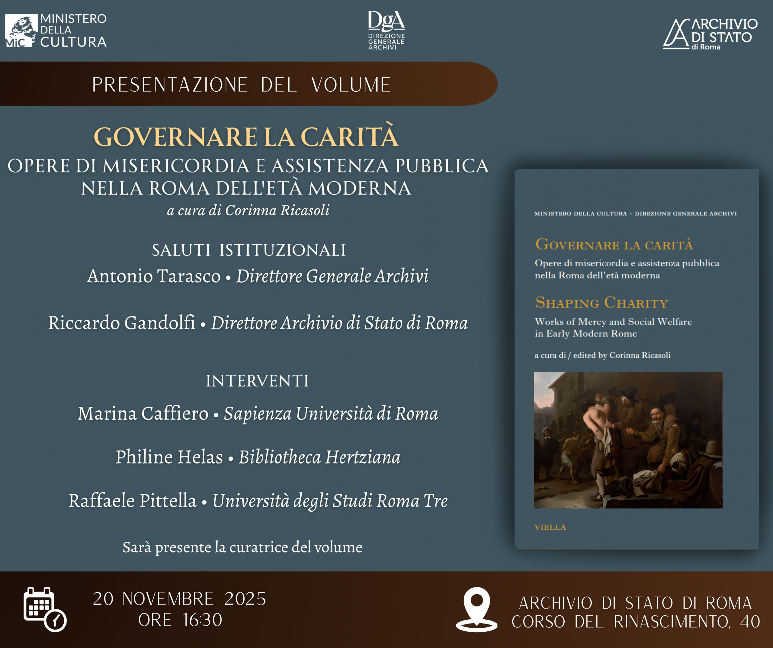 Presentazione del volume “Governare la carità. Opere di misericordia e assistenza pubblica nella Roma dell’età moderna” – Sala Alessandrina, 20 novembre 2025, h. 16.30